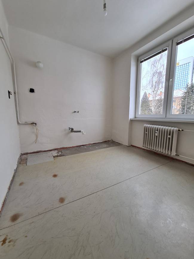 Kúpeľňa je murovaná s vaňou a murovaným samostatným WC. V celom byte sú vyššie stropy ako je štandard. Vstupná chodba a miestnosti sú priestranné, dve miestnosti sú prechodné, ale nemusia byť, pretože samostatný vstup je aj z chodby (takže stačí zamurovať prechodnú jednu časť medzi izbami). Čo sa týka stavu bytu tak boli v roku 2018 menené plastové okná v celom byte, plus žalúzie a sieťky proti hmyzu. Koncom roka 2025 sa robili nové stierky a maľovalo sa na bielo + v dvoch izbách sa menili nové laminátové podlahy, zachovali sa však aj pôvodné drevené parkety v izbách. Odstránila sa pôvodná kuchynská linka. Vonkajšie bytové dvere sa menili taktiež koncom roku 2025. Byt je inak v pôvodnom (rozvody elektriky, odpadu, vody pôvodná kúpeľňa a WC, interiérové dvere) stave, ktorý je čistý, udržiavaný a byt pôsobí veľmi dobrým svetlým dojmom. Nábytok, ktorý sa nachádza v byte môže ostať, prípadne sa byt vyprace - je to na dohode.