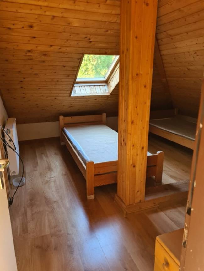 • V podkroví je kuchynský kút, 3 izby, kúpeľňa s WC je taktiež s oknom.