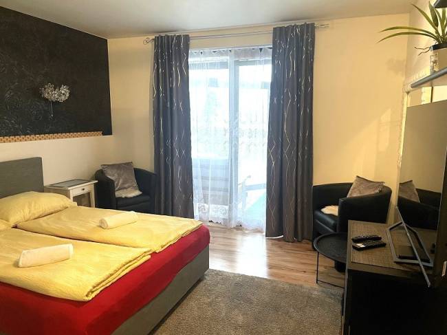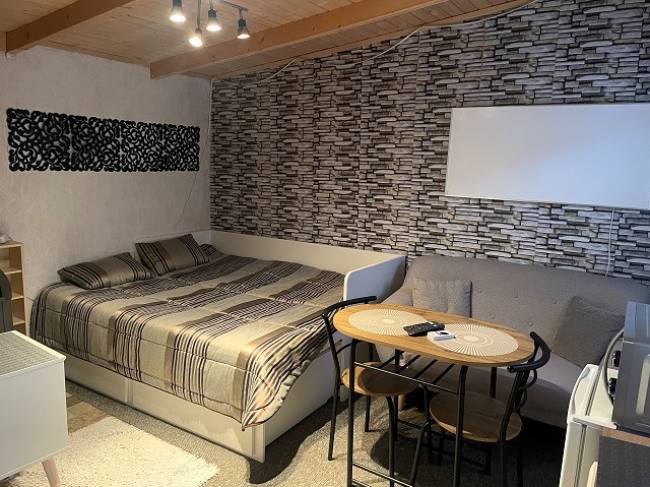 - VEĽKÝ APARTMÁN na prízemí pre 9 osôb : samostatný vchod, vstupná chodba, odkladacia miestnosť, 2 spálne, kúpeľňa so sprchou, vaňou a WC, samostatné WC, kuchyňa s obývačkou a krbom, práčovňa, kotolňa, komora a veľká 50 m2 prestrešená terasa - MALÝ APARTMÁN na prízemí pre 3 osoby : samostatný vchod, vstupná chodba, kuchynský kútik s vybavením a chladničkou, kúpeľňa so sprchou a WC, izba s manželskou posteľou, prísteľkou a vstupom na veľkú prestrešenú terasu - STREDNÝ APARTMÁN na poschodí pre 6 osôb : vonkajšie schodisko, samostatný vchod, vstupná chodba, spálňa s manželskou posteľou, prísteľkou a vstupom na otvorenú terasu (30 m2), kúpeľňa so sprchovým kútom, vaňou a WC, kuchyňa s obývačkou pre 3 osoby a vstupom na prestrešenú terasu (40 m2) so saunou a otvorenú terasu (50 m2).