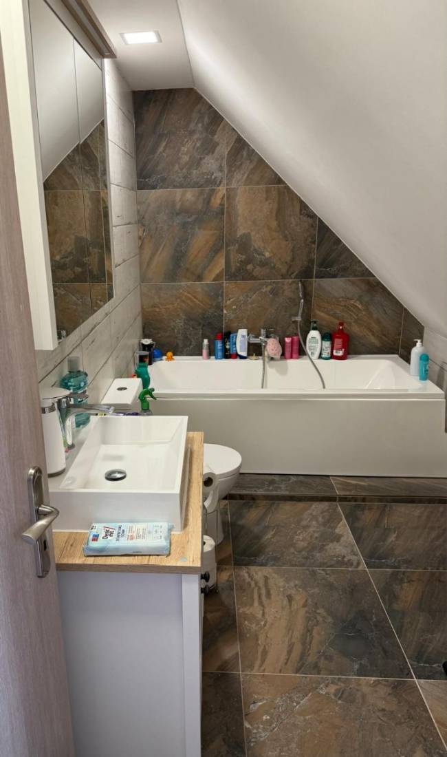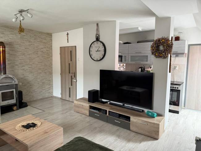 Ponúkame na predaj dvojgeneračný tehlový rodinný dom v obci Plevnik- Drienové, ktorý disponuje dobrým situačným riešením. Na prízemí sa nachádza 3 izbový byt pozostávajúci z chodby, kúpeľne s WC, priestrannej kuchyne s jedálňou, obývačky a dvoch nepriechodných izieb. V podkroví sa nachádza dvojizbový byt s priestranným balkónom, ktorý pozostáva z chodby, spálne, obývačky, kuchyne, kúpeľne s WC a technickej miestnosti. Oba byty disponujú vlastným vchodom a sú plnohodnotne využiteľné na bývanie. Dom je podpivničený, kde sa nachádza dielňa s kotolnou, skladové priestory a izba na odkladanie sezónnych vecí. Dom je postavený na pozemku o výmere 656 m2, pričom je vedľa rodinného domu altán na posedenie, bazén s kompletnou bazénovou technológiou na údržbu a ohrev vody /tepelne čerpadlo/. Dom bol kolaudovaný v roku 1975, pričom rozsiahlou rekonštrukciou prešiel od roku 2009, je zateplený, vybavený plastovými oknami, napojený na inžinierske siete - verejný vodovod, plyn, elektrina. Nakoľko v obci nie je vybudovaná kanalizácia, dom má žumpu o objeme cca 12m3. Vykurovanie a ohrev vody sú zabezpečené kondenzačným plynovým kotlom, pričom obe bytové jednotky disponujú krbovými kachľami na drevo a podkrovný byt je vybavený klimatizačnou jednotkou. Obec Plevník-Drienové sa nachádza len 10 minút jazdy autom od okresných miest Považská Bystrica a Bytča, ktoré ponúkajú kompletnú občiansku vybavenosť. Samotná obec disponuje základnou školou po 9.ročník, škôlkou, potravinami, je obklopená krásnou prírodou a je dobre dostupná vďaka železničnej stanici, blízkemu výjazdu/zjazdu diaľnice D1. Zastávka medzimestskej autobusovej linky PB-BY a naopak je vzdialená od domu len 100 m od domu. Bližšie informácie pri obhliadke.