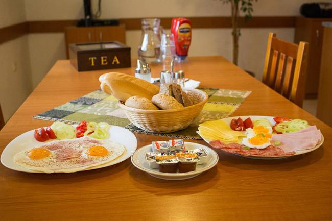 Prízemie: • Priestranná vstupná predsieň • Recepcia pre pohodlný príjem hostí • Súkromný byt pre majiteľov – samostatné a komfortné bývanie • Spoločenská miestnosť s barom – ideálna na podávanie raňajok/večerí • Kompletne vybavená kuchyňa + sklad, umývarka • Toalety pre hostí, technická miestnosť, kotolňa • Východ na terasu s posedením